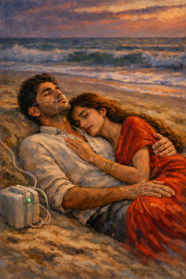 அணைத்திருக்கும் கவிதாவின் கதகதப்பு, சீறிப் பாயும் கடலலைகளின் சத்தம், நாசியில் நுழையும் ஆக்சிஜன்... இந்தத் தருணம் அப்படியே உறைந்துவிடாதா என்ற ஏக்கம் கண்ணீராகத் துளிர்க்கப் பார்த்தது. அதை அவசரமாகத் துடைத்துக் கொண்டான். தன் மரணவலியை விட, அது அவளை பாதிக்குமோ என்ற பயம்தான் அவனுக்குப் பெரிதாக இருந்தது.