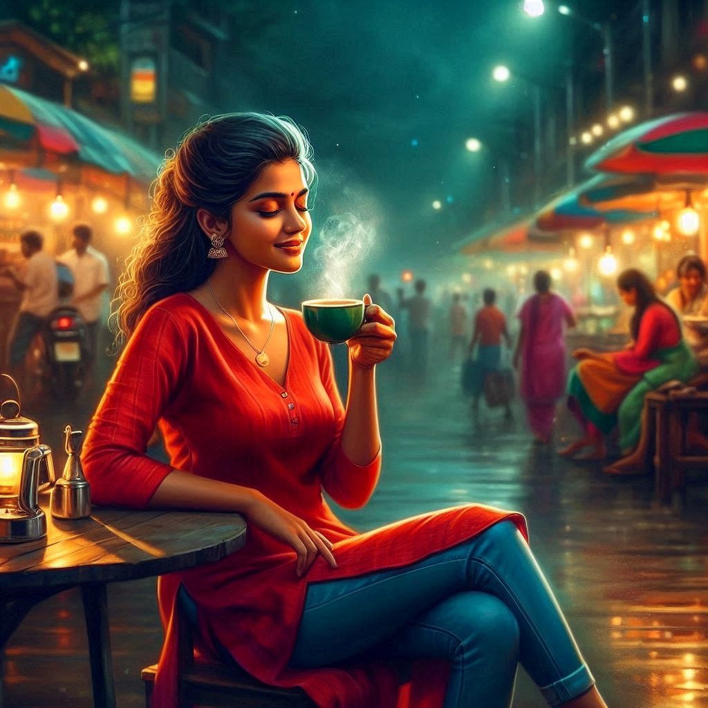 “அண்ணா! ஸ்ட்ராங்கா இரண்டு மசாலா டீ. ஒன்னு மட்டும் சக்கரை தூக்கலா” என்று சொல்லிவிட்டு பெஞ்சில் அமர்ந்தாள் .