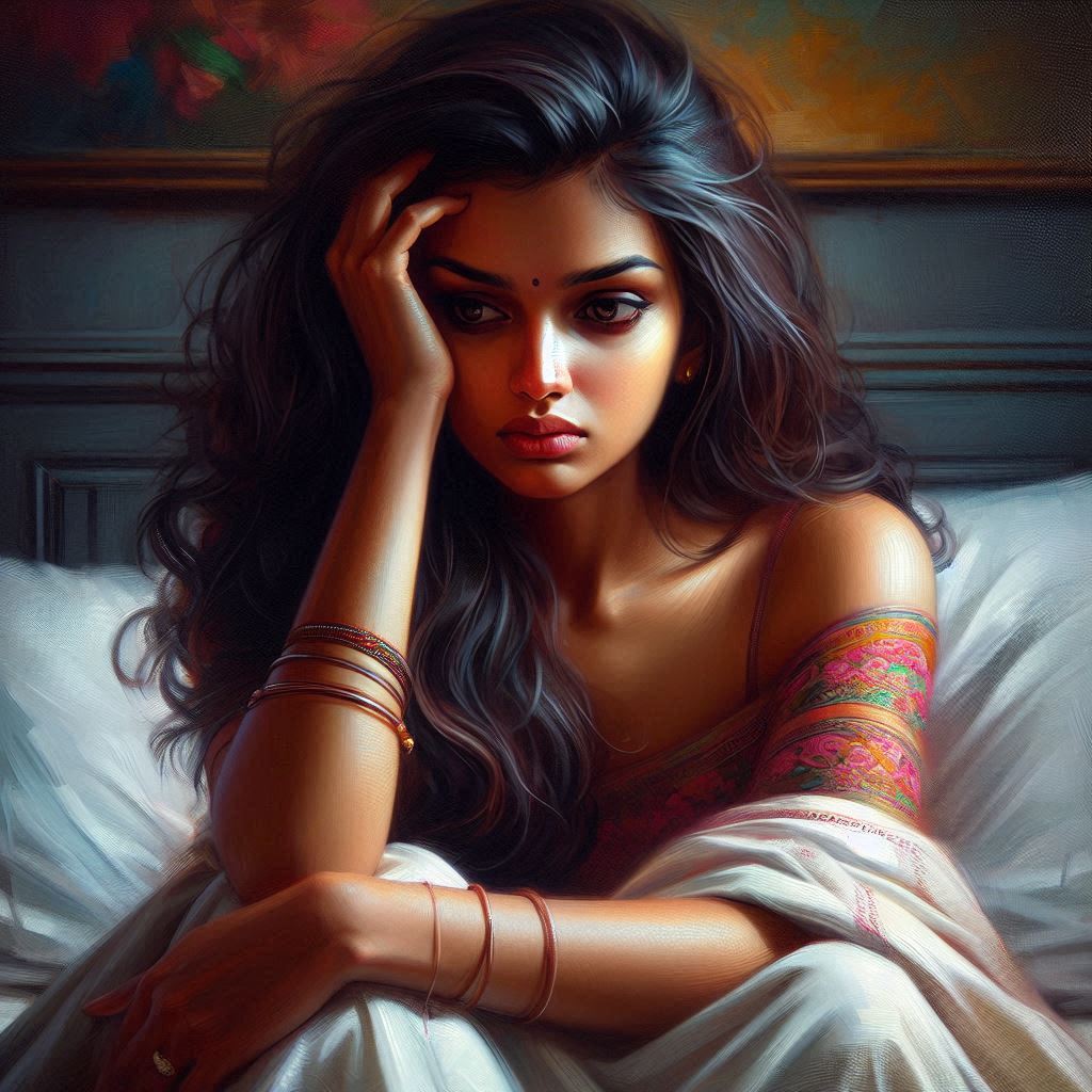 தன் அறையின் படுக்கை மீது அப்படியே சிலை போலவே அமர்ந்திருந்தாள். கருமை அடர்ந்திருந்த விழிகள் பார்ப்பவர்களையும் கூடச் சோகத்தில் ஆழ்த்தும் அளவிற்கு வேதனை நிரம்பியிருந்தது. வீட்டில் உள்ள எல்லோருக்குமே அவளின் வருத்தம் புரிந்தாலும், அதற்கான காரணம் தெரிந்திருக்கவில்லை.