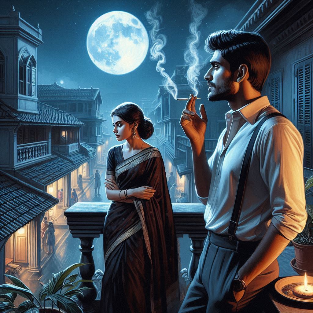 வானின் இருளை முடிந்தளவுக்கு விரட்டிக் கொண்டிருந்த நிலவின் வெளிச்சத்தில் நடுநிசியில் ஆதித்தியா சிகரெட்டும் கையுமாய் நின்று கொண்டிருந்தான்.